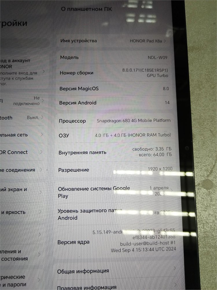 ПЛАНШЕТ HONOR PAD X8A 4/64GB WI FI